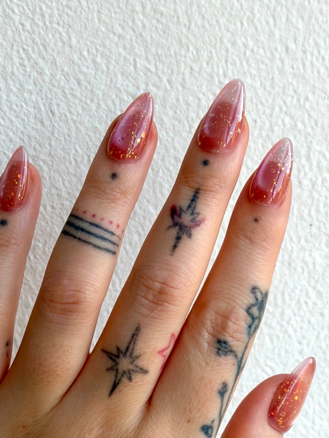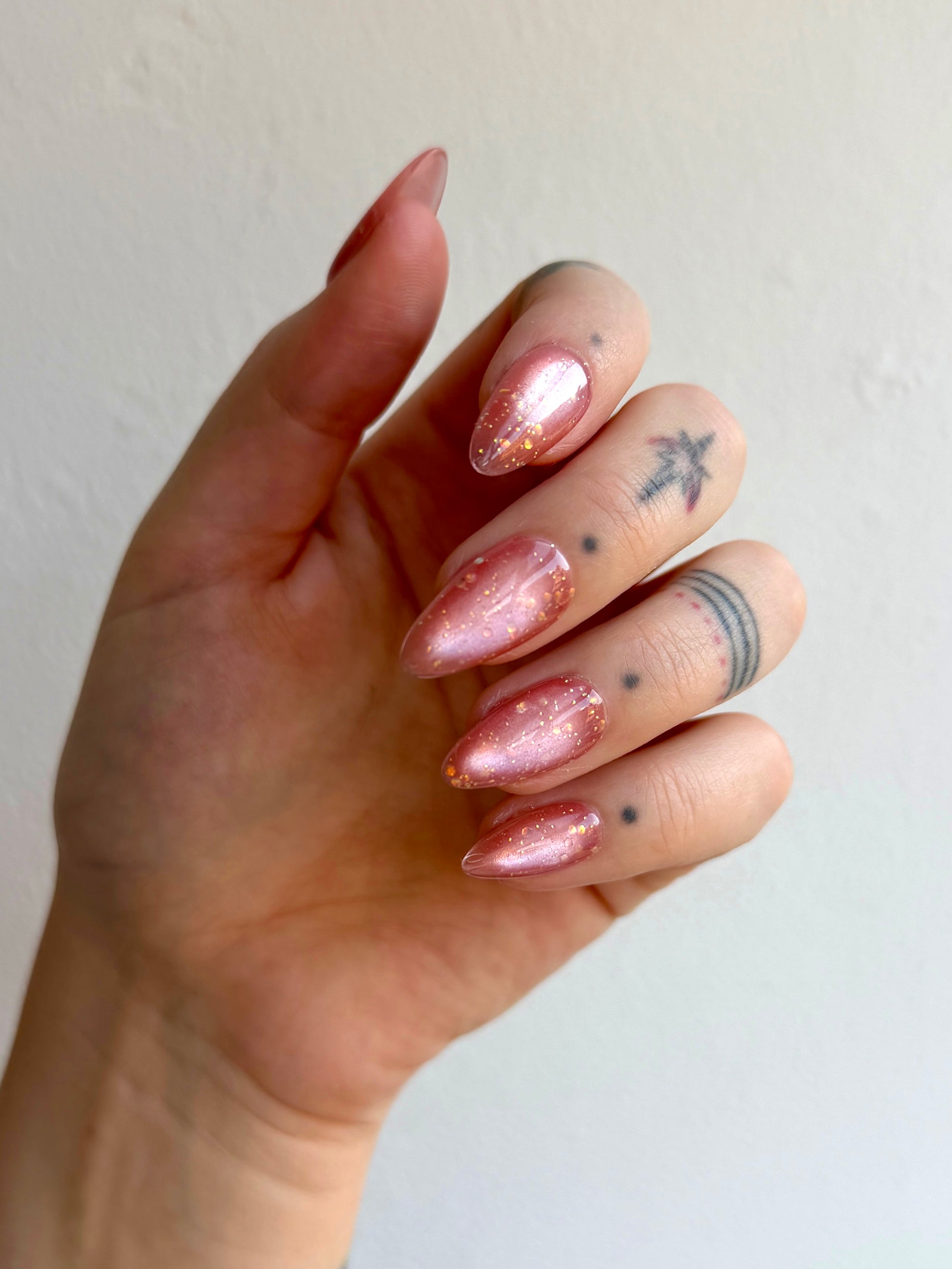 Part of Fette's festive collection inspired by our favourite drinks - the perfect peachy-blush shimmer cateye with sparkle accents in medium almond. Reusable prosecco luxury.