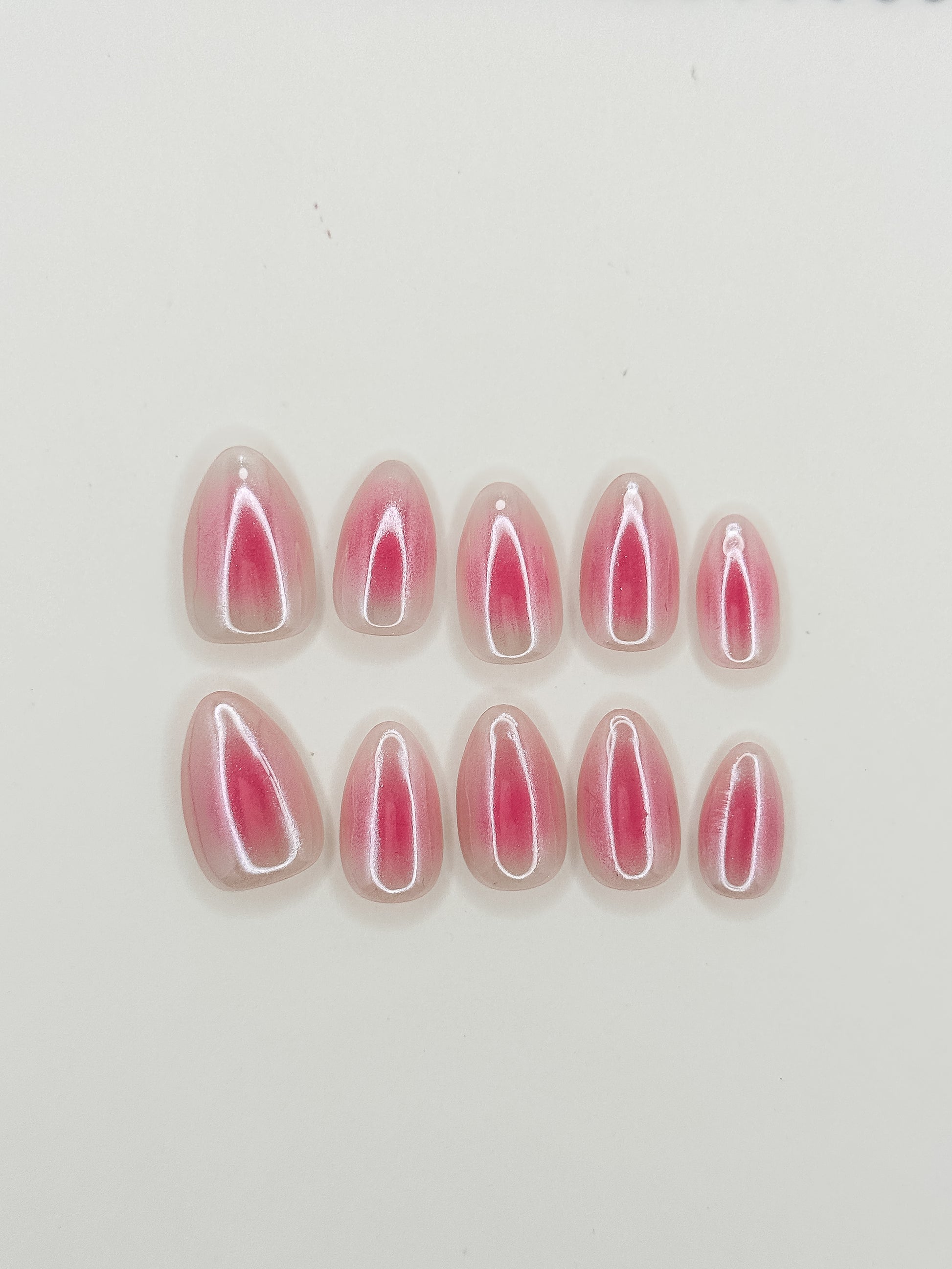 Please Note regarding Chrome & "Glazed" Finishes: These designs feature hand-rubbed chrome powder to achieve their signature high-gloss, mirror-like shine. Due to the unique static application process, this finish is more delicate than solid gel colours. Please avoid using your nail tips to scratch hard surfaces or open cans to prevent chipping. Additionally, because these are handmade, microscopic dust particles may occasionally settle during the application; slight irregularities are normal and not considered defects.