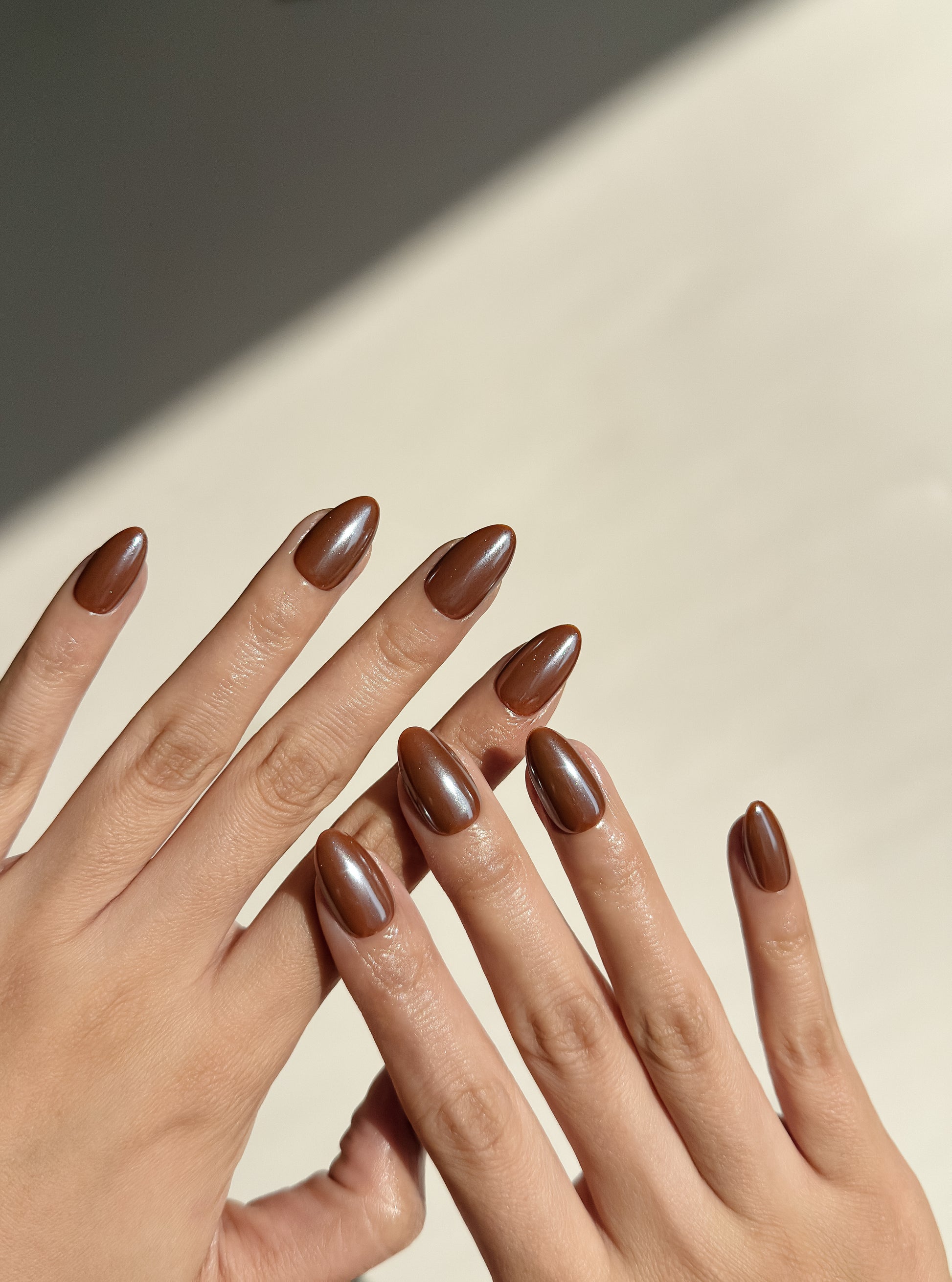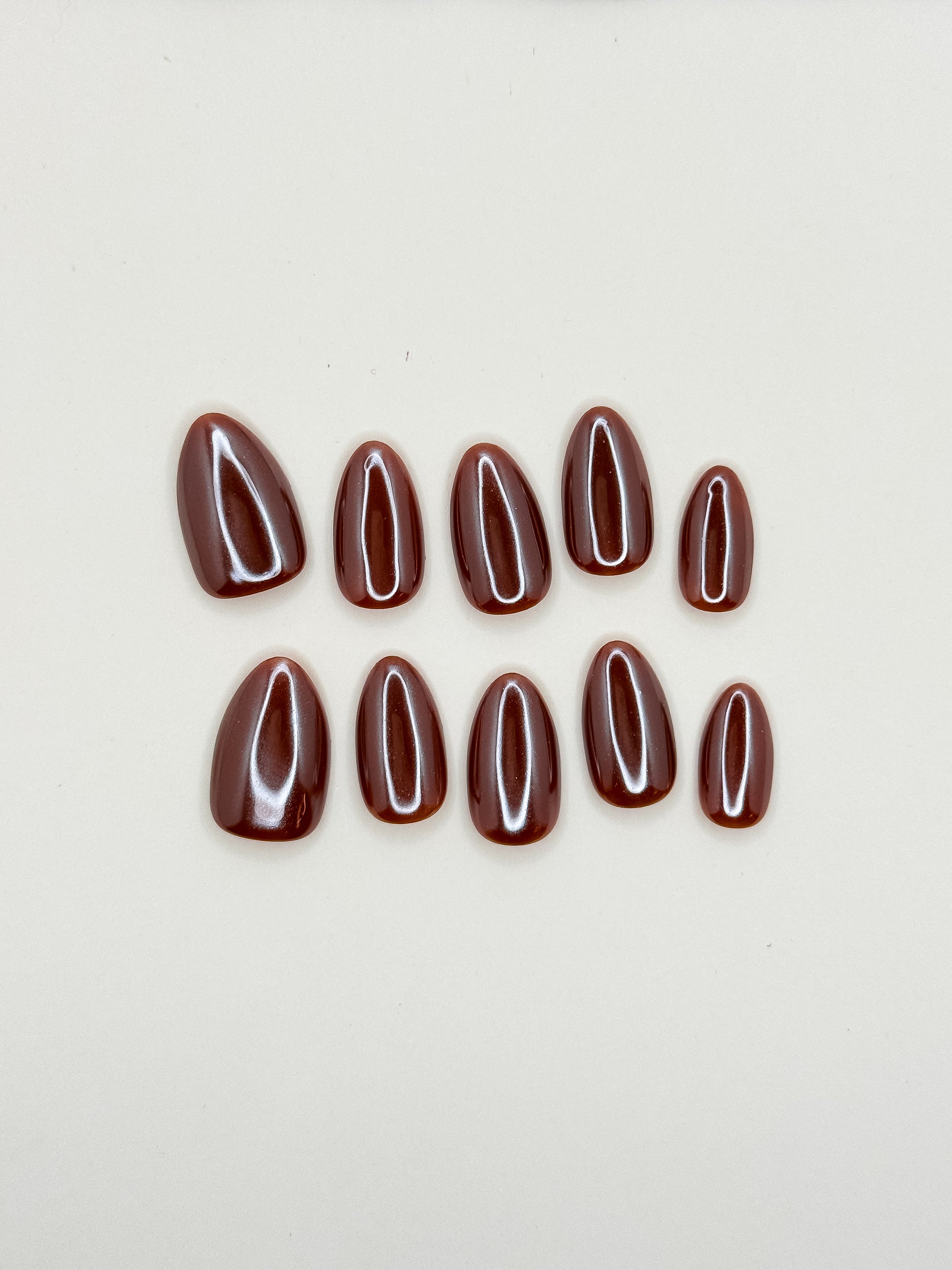 Please Note regarding Chrome & "Glazed" Finishes: These designs feature hand-rubbed chrome powder to achieve their signature high-gloss, mirror-like shine. Due to the unique static application process, this finish is more delicate than solid gel colours. Please avoid using your nail tips to scratch hard surfaces or open cans to prevent chipping. Additionally, because these are handmade, microscopic dust particles may occasionally settle during the application; slight irregularities are normal and not considered defects.