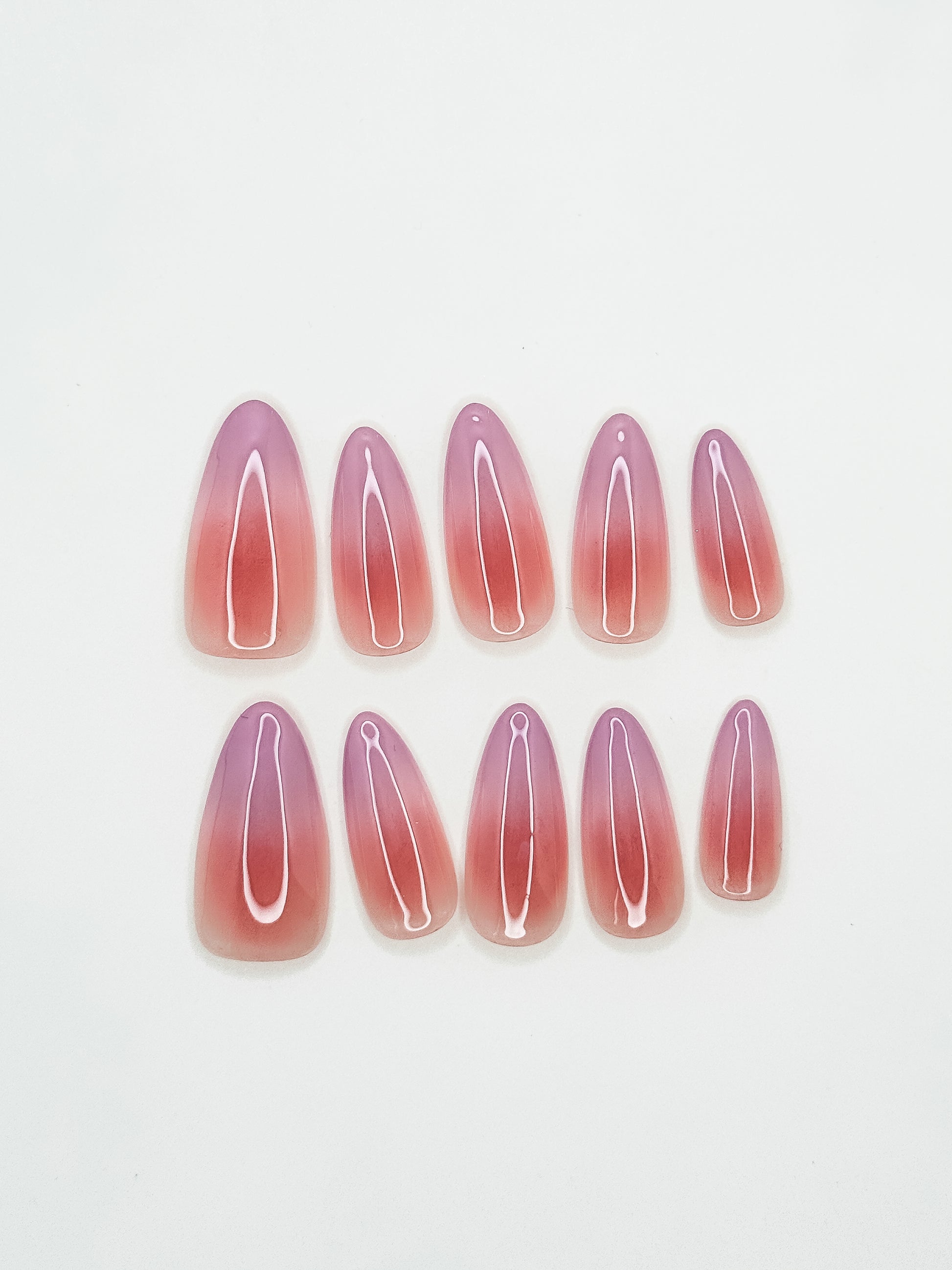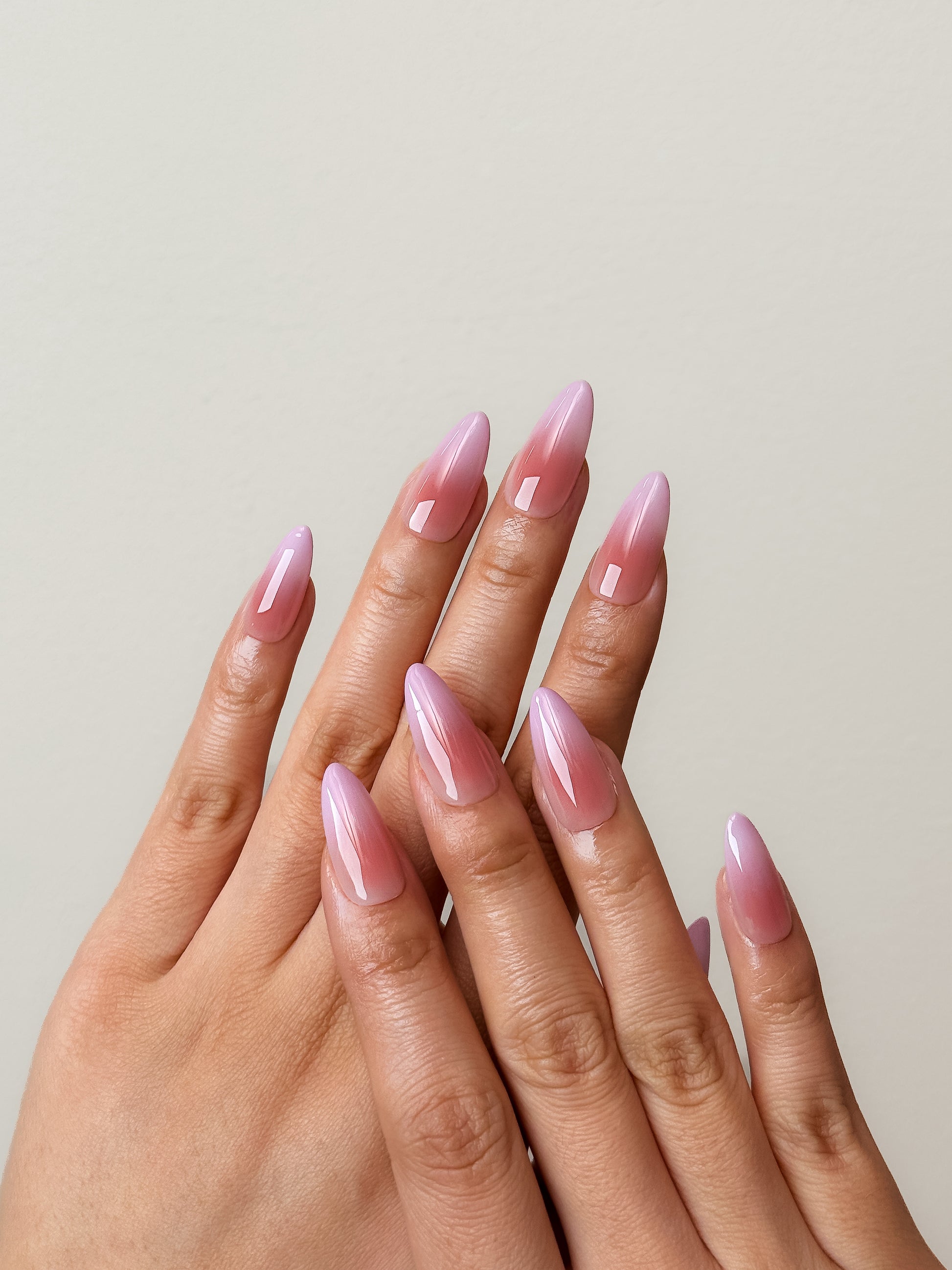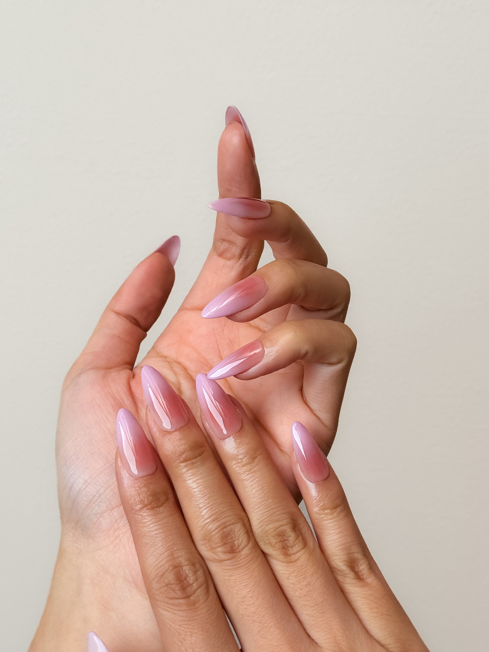 A soft peachy gradient fading into the perfect baby pink. It's no wonder this is called the Class Favourite - it's shape and color effortlessly elongate the fingers while remaining elegantly understated.
