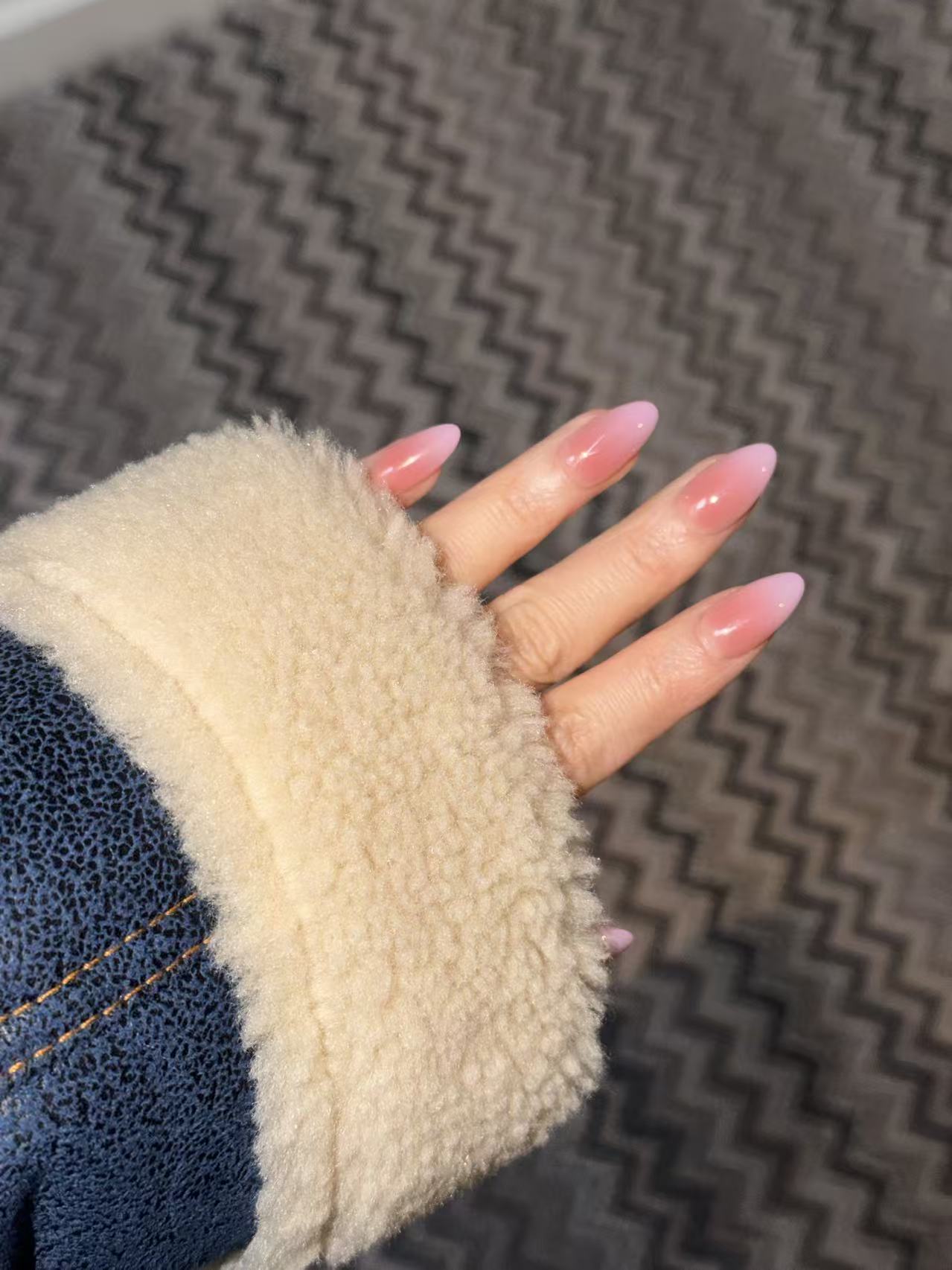 A soft peachy gradient fading into the perfect baby pink - but in a miniature length.