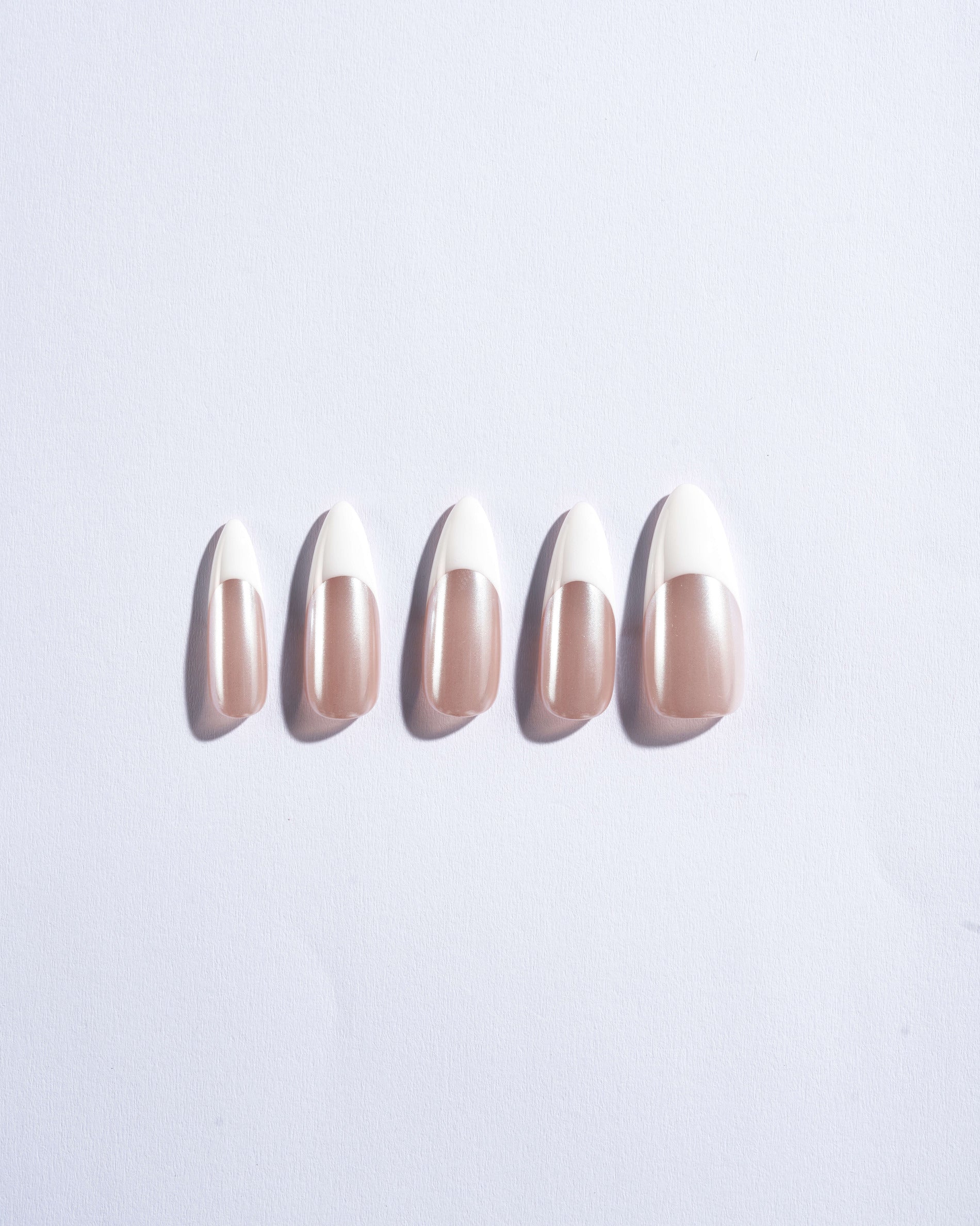 Classic Frenchie is the modern twist on your timeless French tip. Featuring a warm nude base and radiant white tips, these press-on nails are finished with shimmering chrome powder for added shine and impact. Perfect for any occasion, they offer a refined touch that complements both casual and formal ensembles.