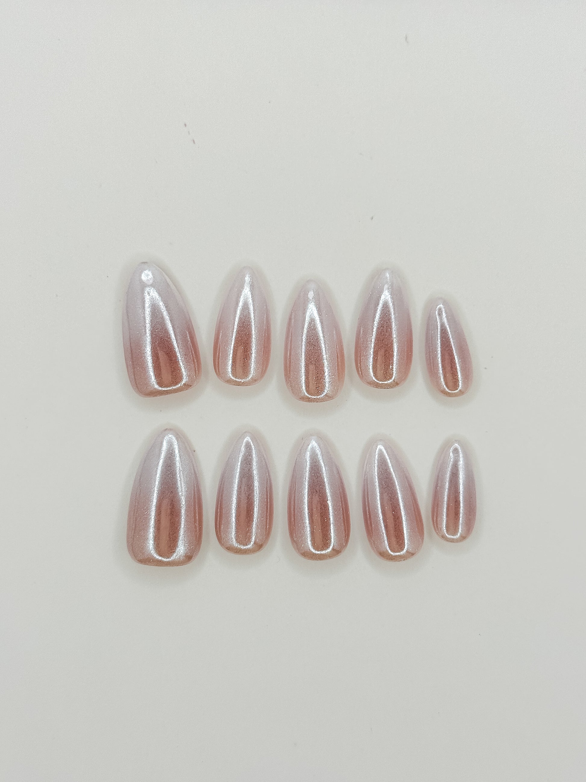 Please Note regarding Chrome & "Glazed" Finishes: These designs feature hand-rubbed chrome powder to achieve their signature high-gloss, mirror-like shine. Due to the unique static application process, this finish is more delicate than solid gel colours. Please avoid using your nail tips to scratch hard surfaces or open cans to prevent chipping. Additionally, because these are handmade, microscopic dust particles may occasionally settle during the application; slight irregularities are normal and not considered defects.
