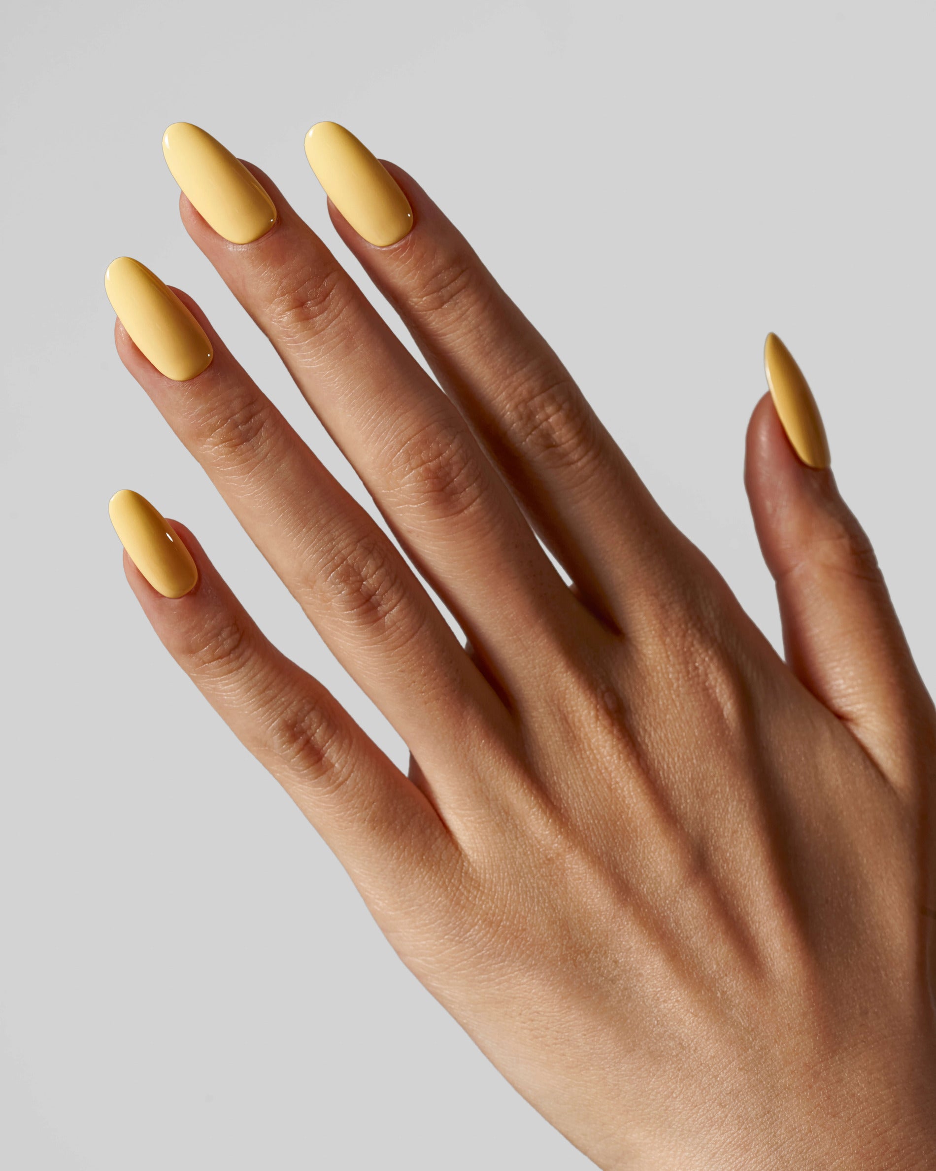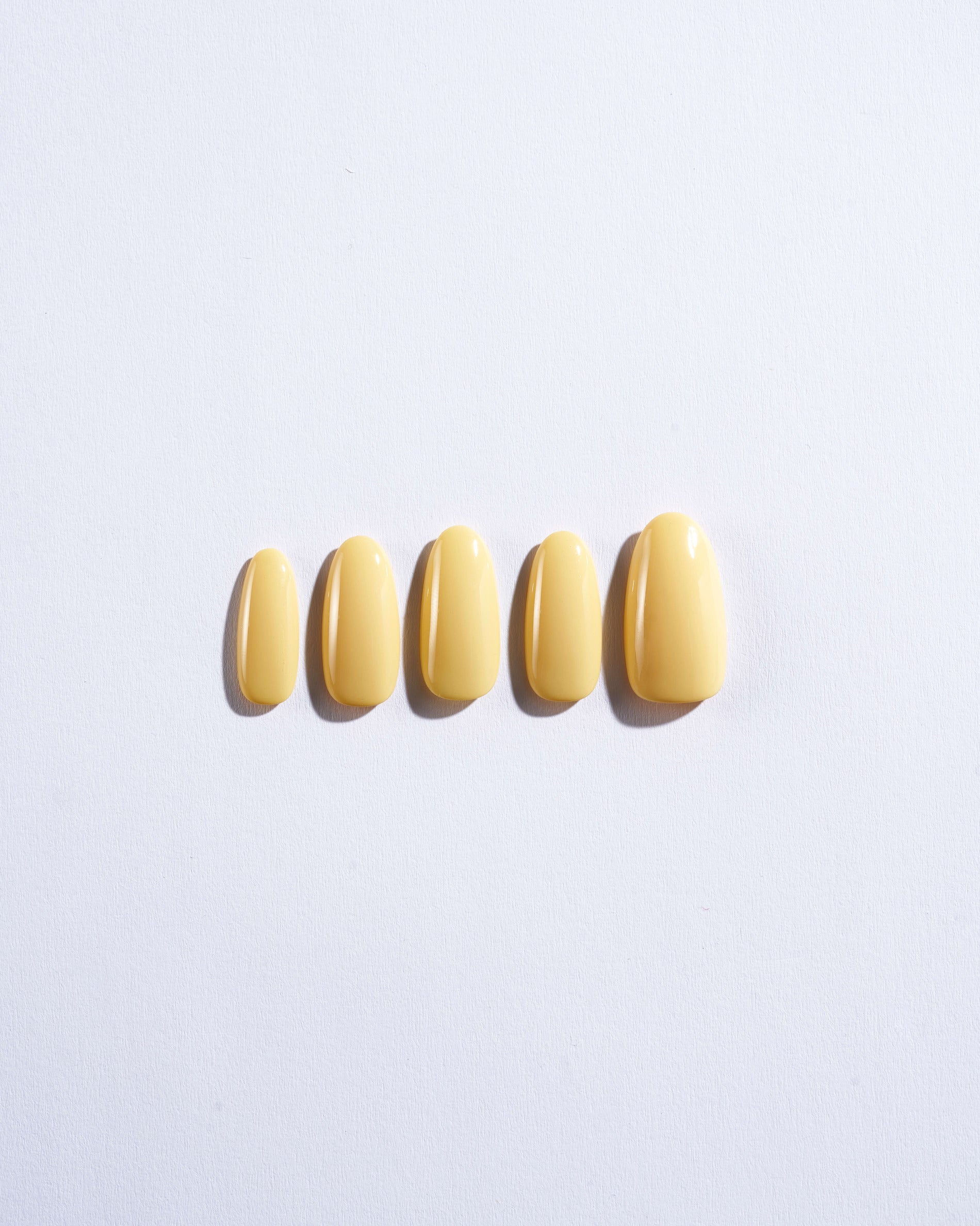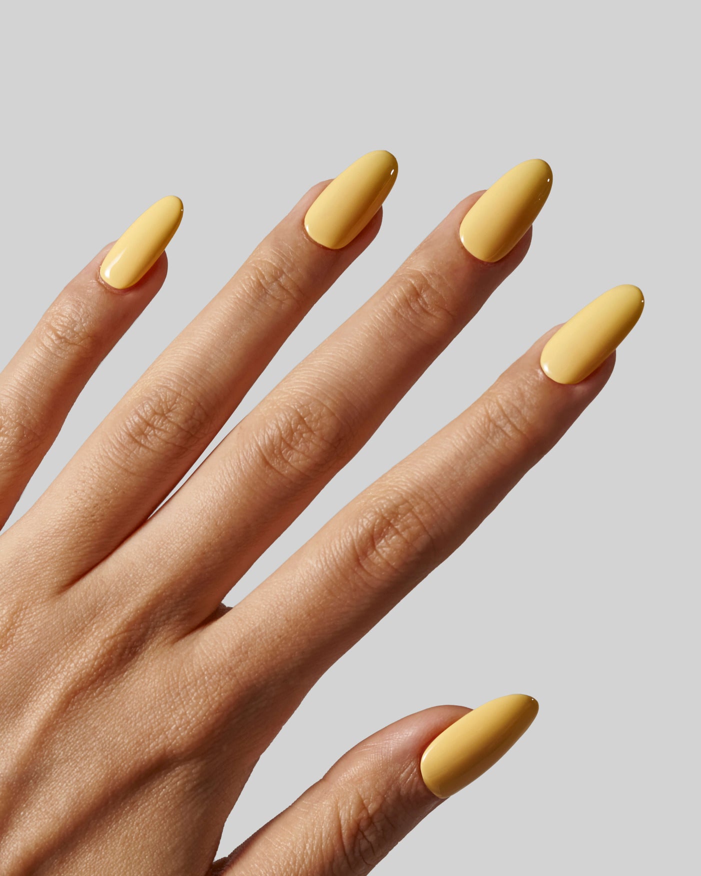 Bright, cheerful, and full of sunshine. Get ready to turn heads with these chic yellow nails, perfect for adding a pop of sunshine to any look. In a medium-length, oval shape, this bold, citrusy hue gives effortless, fun vibes.
