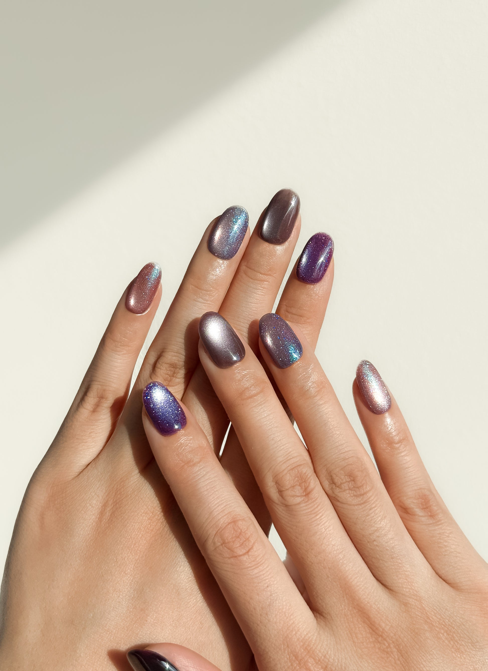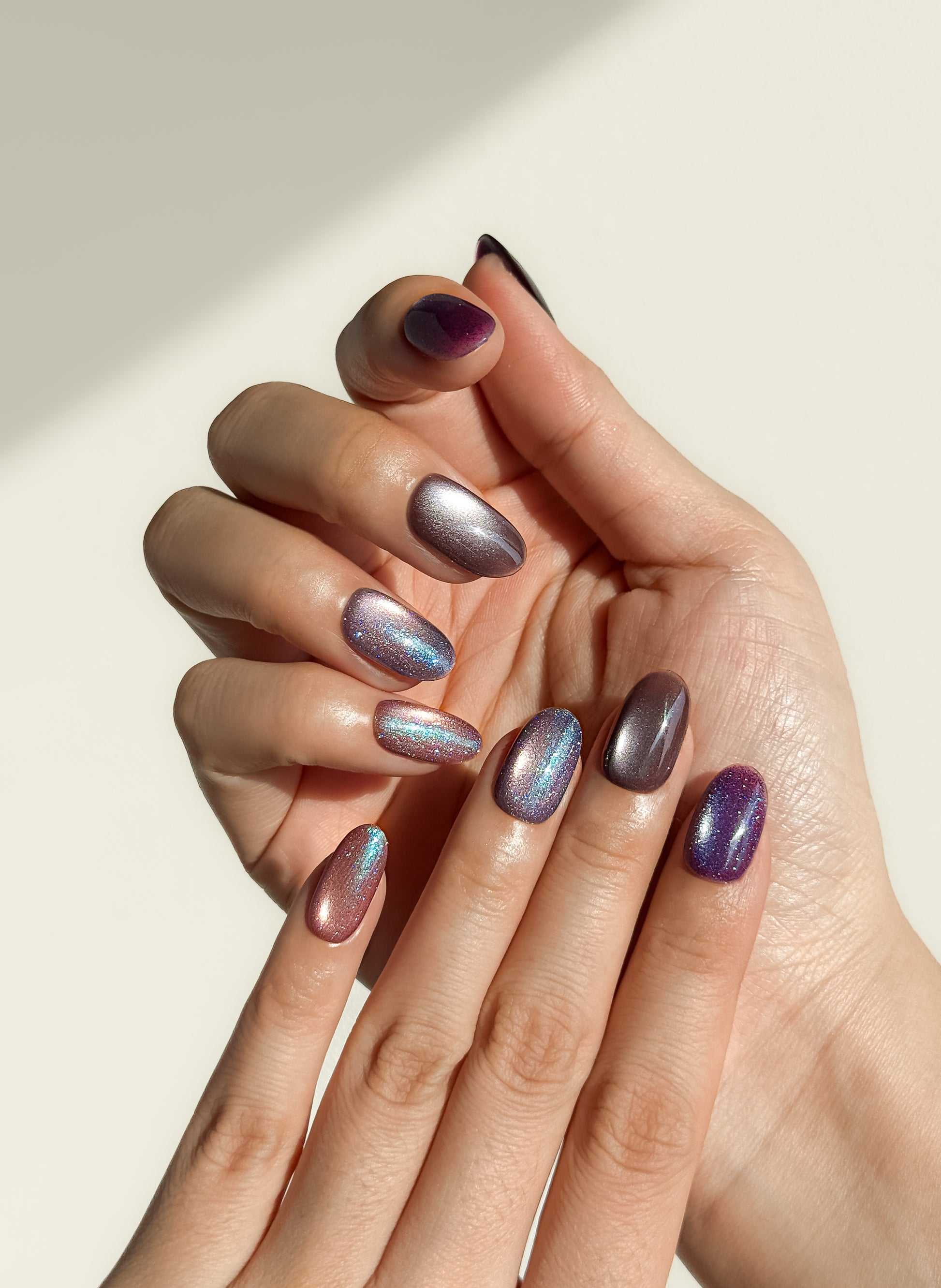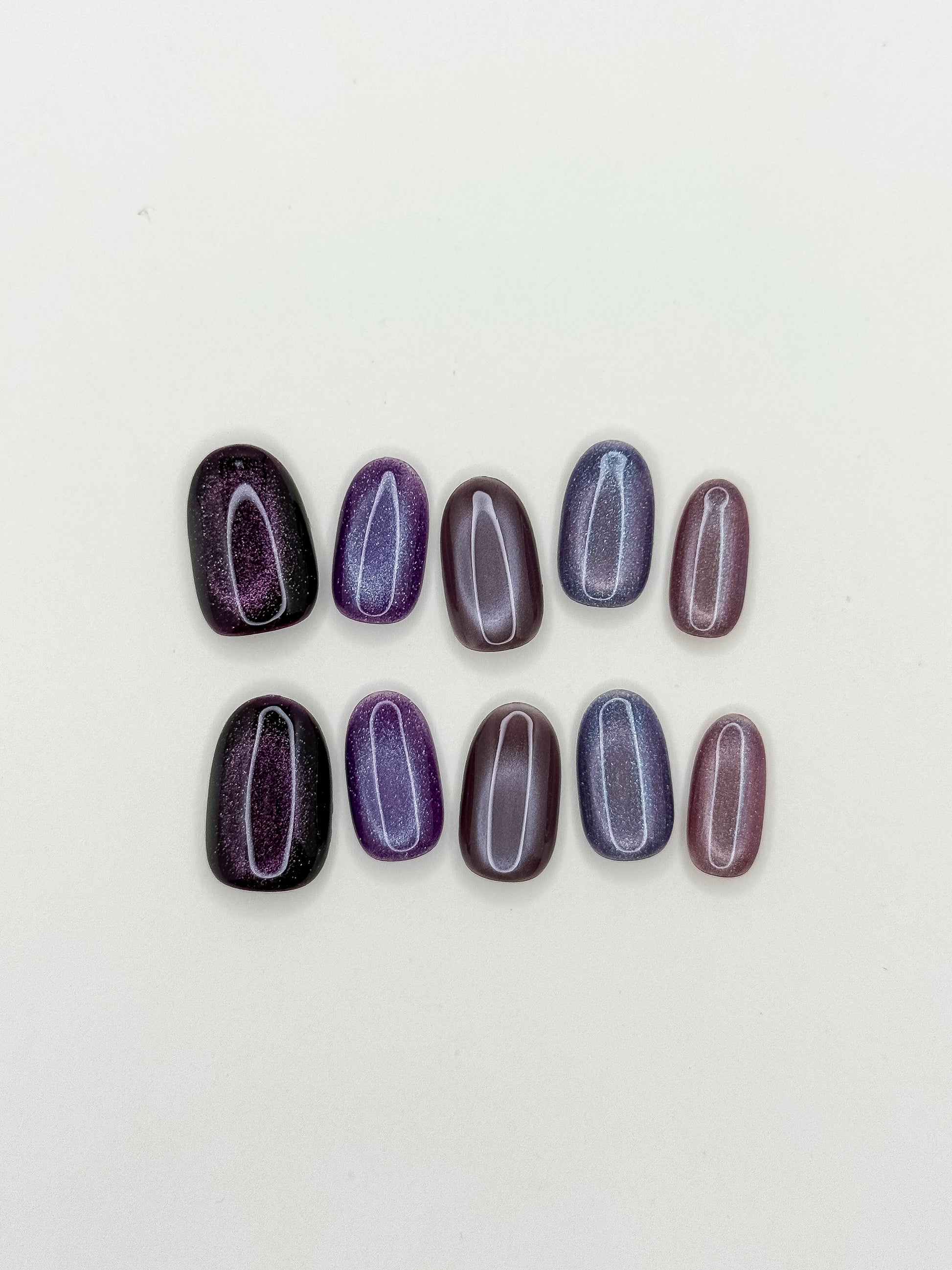 Deep purples and mauves accented with holographic turquoise sparkle - like the aurora dancing through a twilight sky. Your energy made visible.