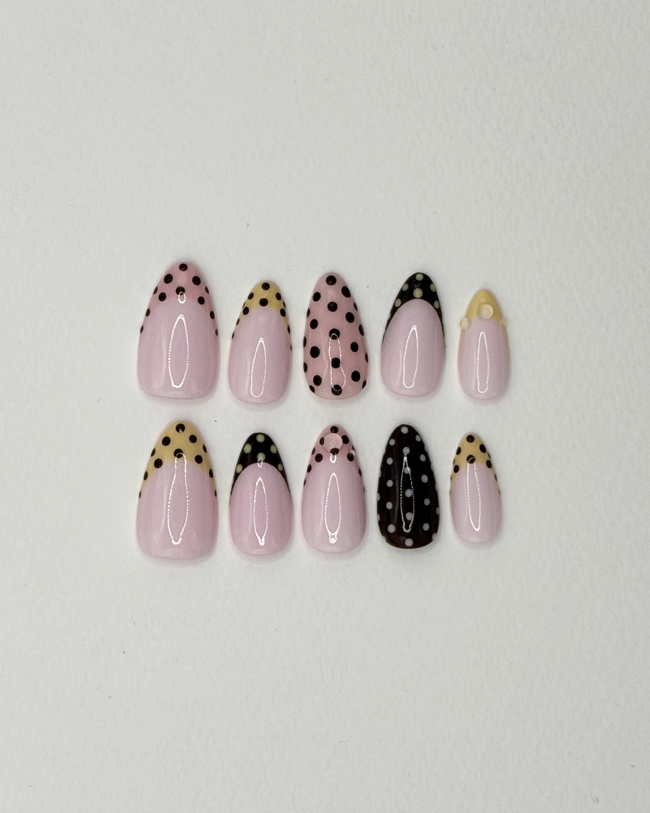 Parisian chic meets playful rebellion. This season's most coveted trend - polka dots - gets the FETTE treatment with hand-painted precision on a dreamy blush base. Because sometimes the most sophisticated statement is knowing when to break the rules with a wink. Pure Left Bank energy for your fingertips.