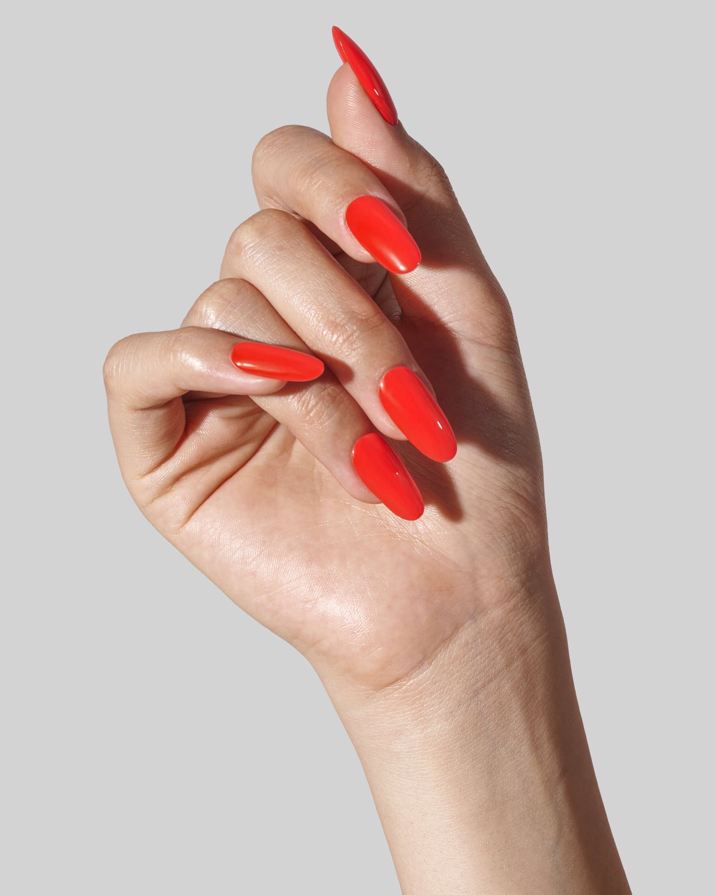 A classic, daring red - perfect for a Friday in the office and a night out on the town. Oval shape and medium length, ideal for work and play. Easily matched to a red lip and a little, impractical handbag.