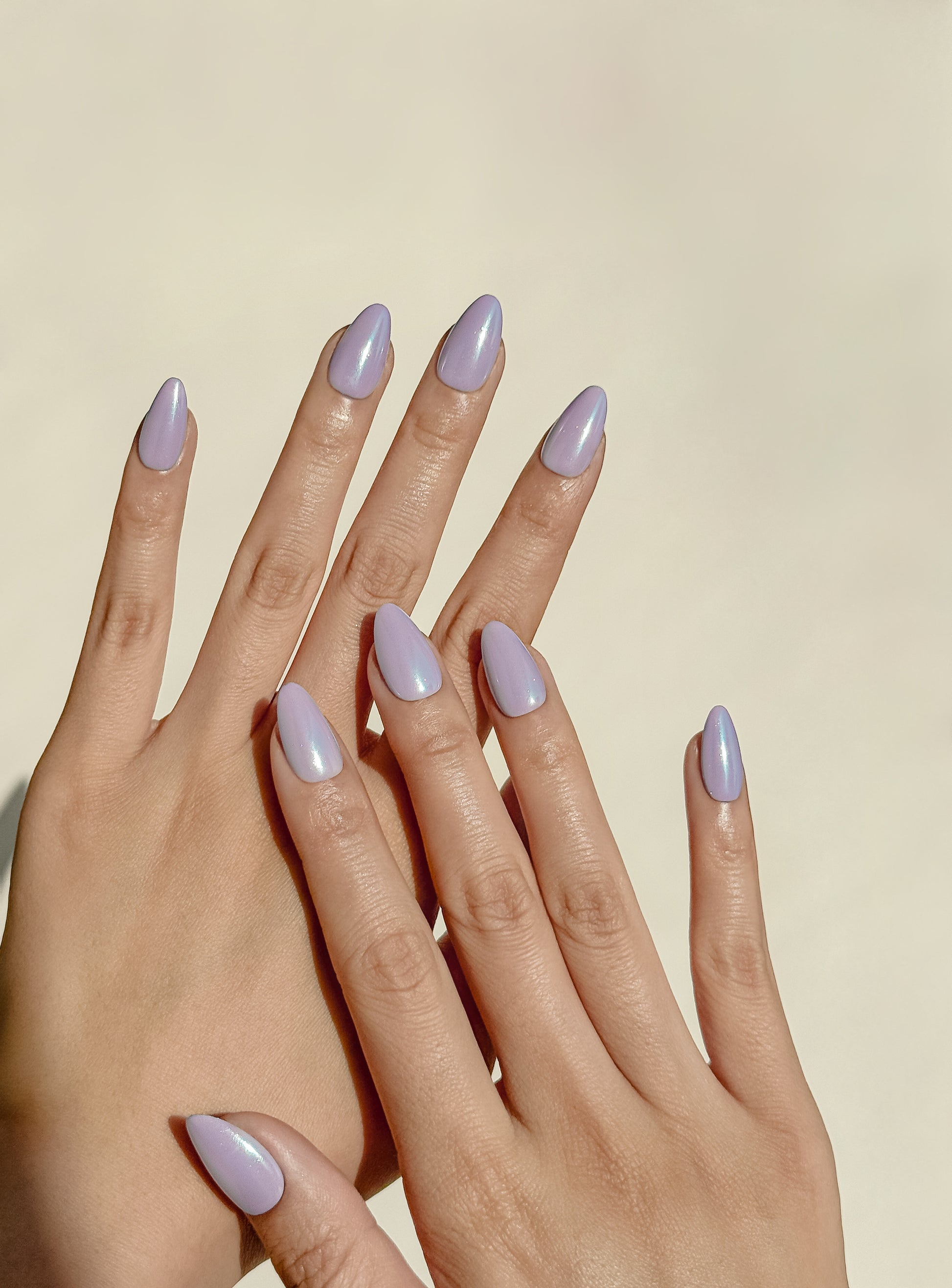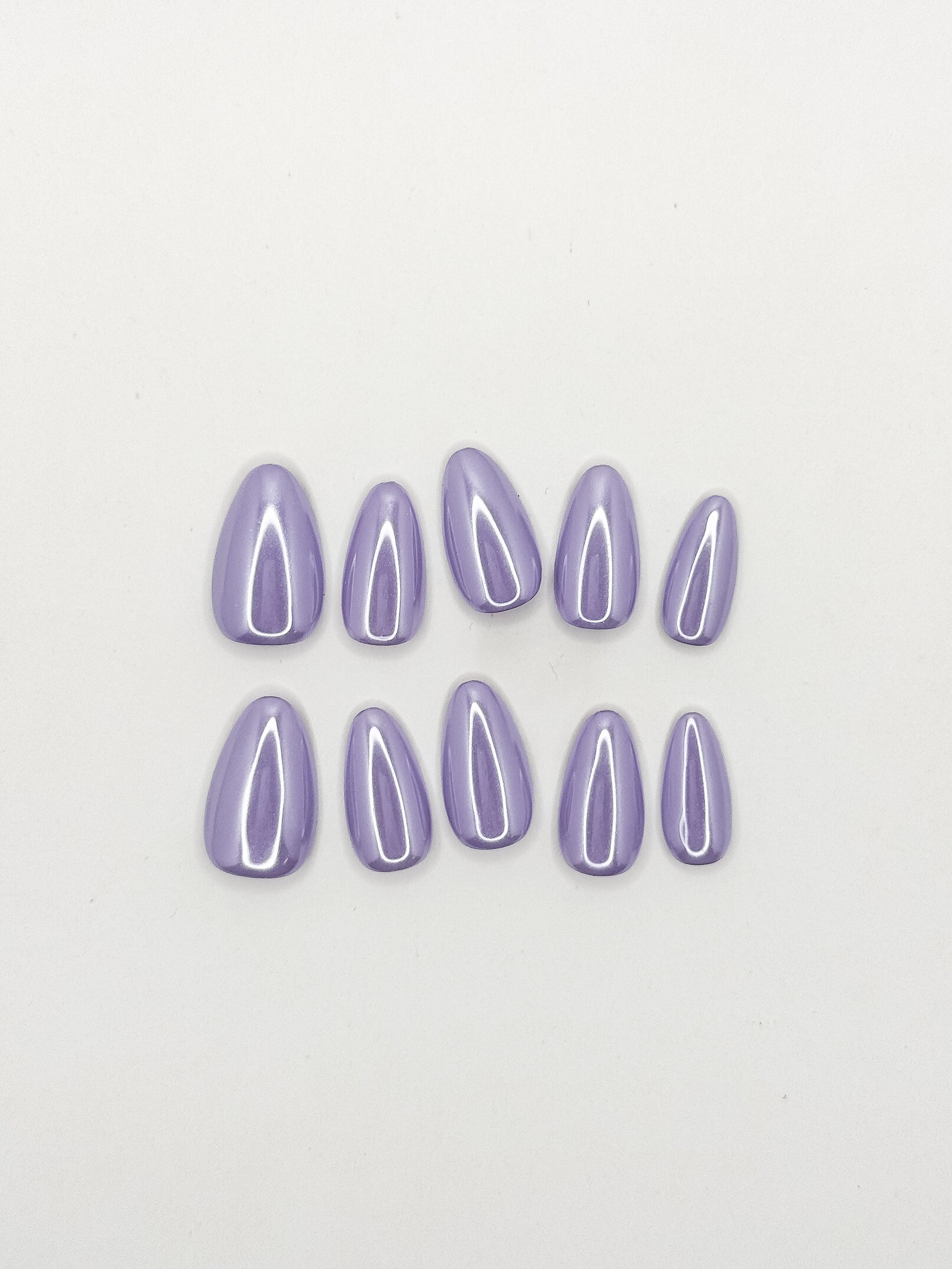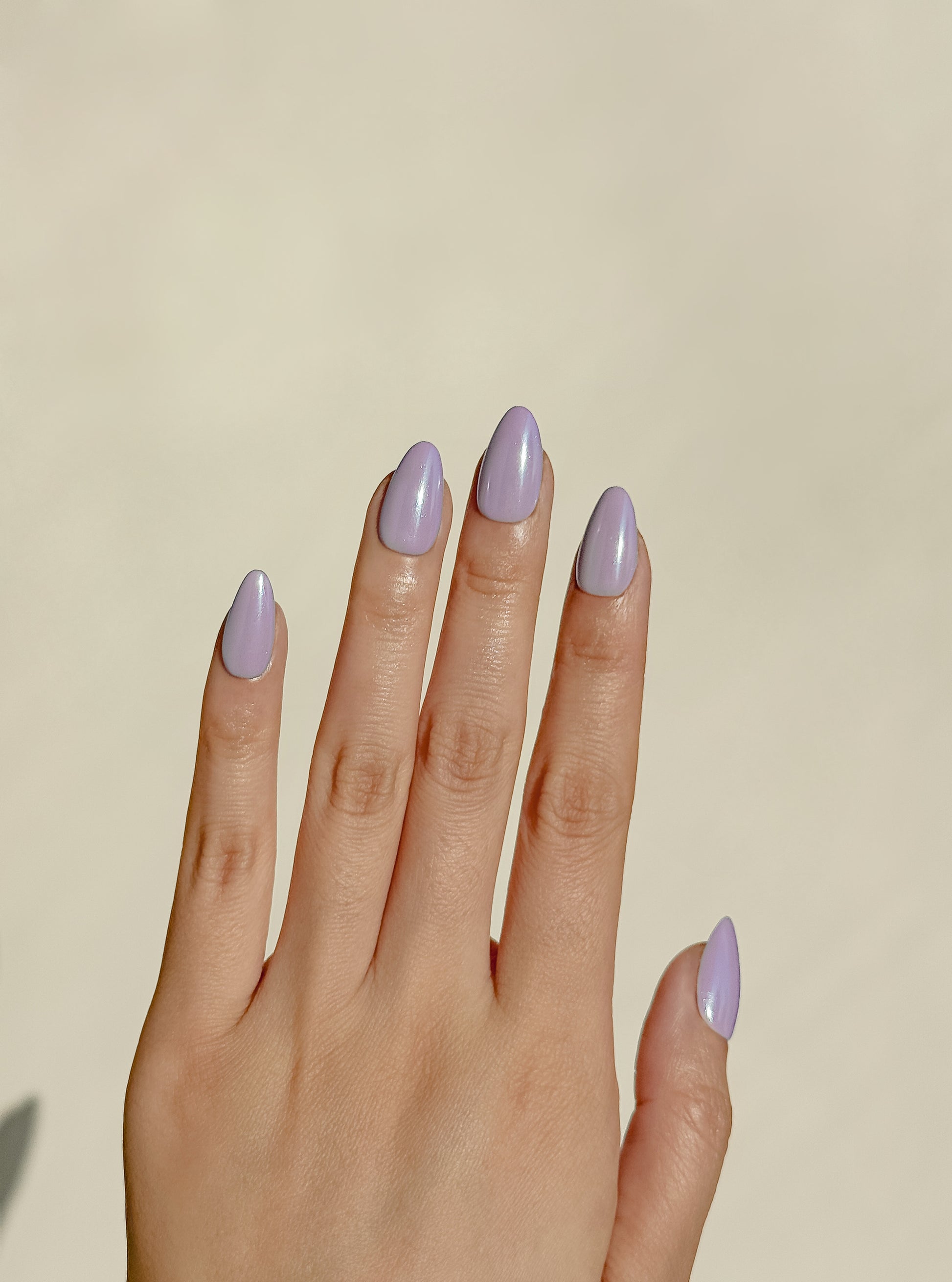 A dreamy, muted lilac with a soft pearlescent shimmer that catches the light like a glazed donut - the colour of taro milk tea, hand-painted and irresistible.
